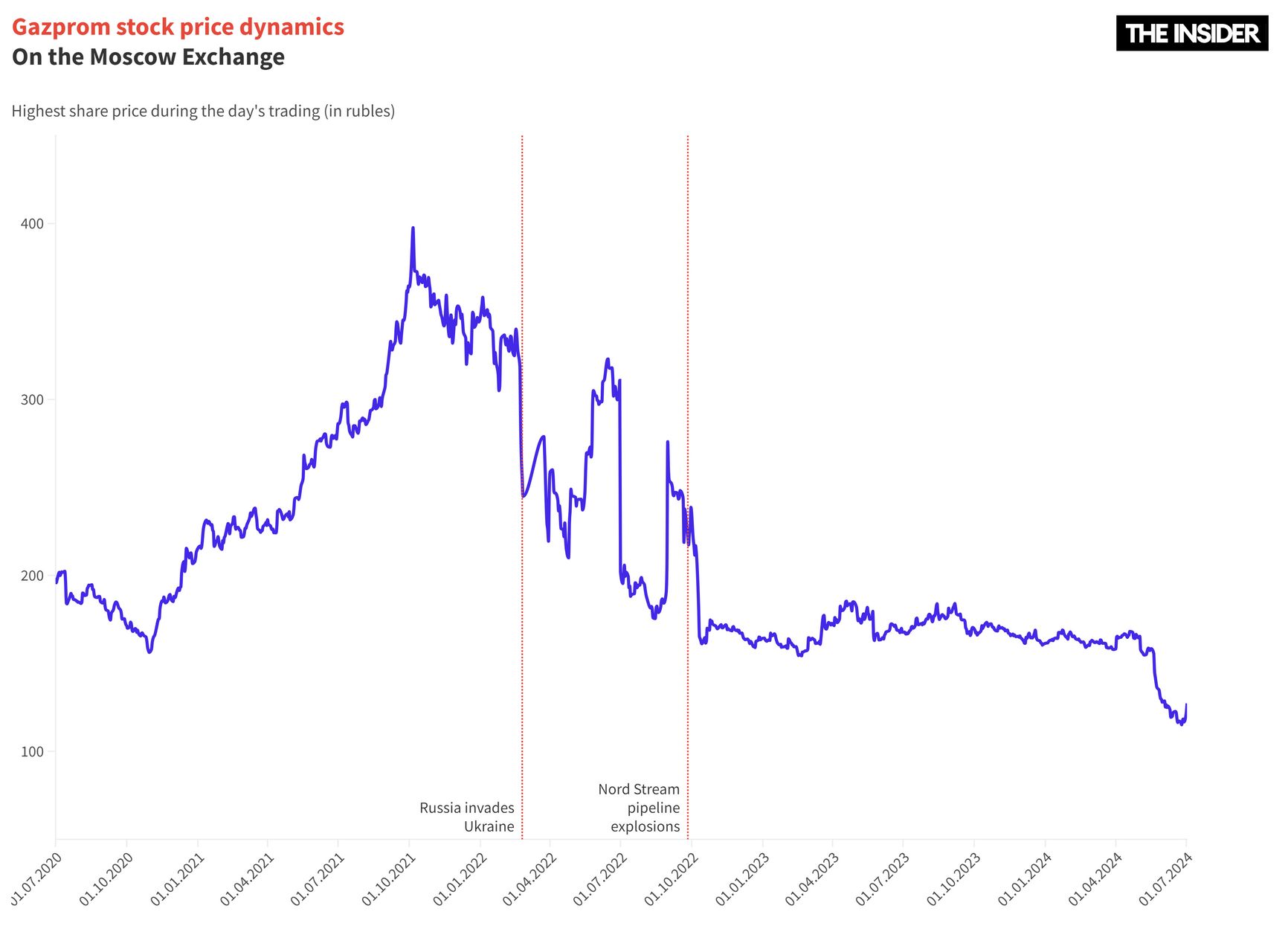 In contrast, Gazprom has not paid annual dividends for three consecutive years. The last interim dividends were paid out in 2022, with investors receiving a record 1.2 trillion rubles in the first half of the year. The latest dividend suspension has negatively impacted Gazprom's share price, which has dropped by 30% in recent months. Gazprom stock reached a peak of 367 rubles in October 2021, four months before Russia launched its full-scale invasion of Ukraine; it stands at 131 rubles today.