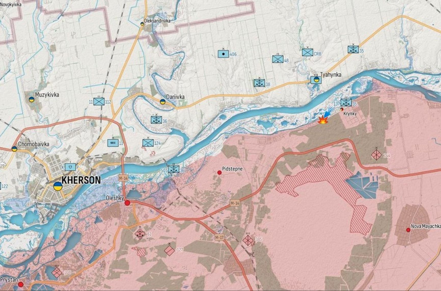 On the other hand, the AFU also face challenges in significantly expanding the bridgeheads on the left bank. The situation resembles, in miniature, the Allies' landing at Anzio behind the German defense line in Italy. Germans struggled for months to push the landed forces back into the sea, and the Allied forces found it hard to break the defense around the bridgehead and reach Rome and the supply routes of the German “Gustav Line.” Nevertheless, the Battle of Anzio forced the German command to deploy all reserves, leading to the inability to hold the main defensive line. If the Ukrainian landing pursues a similar objective, it is already bearing fruit, evidenced by the redeployment of the 810th Marine Brigade and two regiments of the 104th Airborne Division to Krynky.