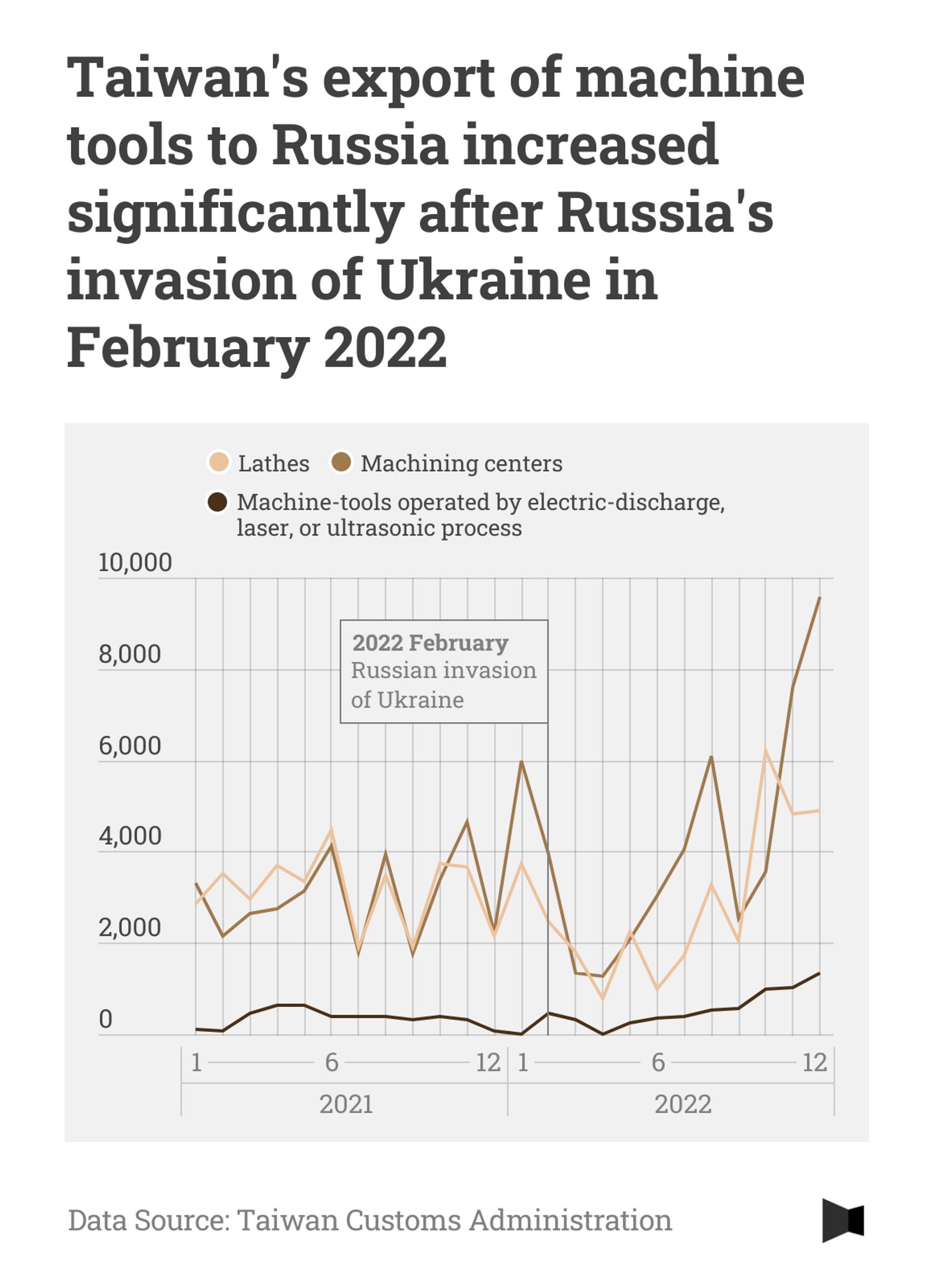 After the start of Russia’s full-scale invasion of Ukraine, Taiwan, like much of the rest of the civilized world, announced sanctions against the aggressor. However, the first wave of sanctions only covered goods in the fields of semiconductors, telecommunications, and aerospace. They did not include machine tools. With its access to other markets closed off, Russia shifted its demand for high-end machine tools to Taiwan.