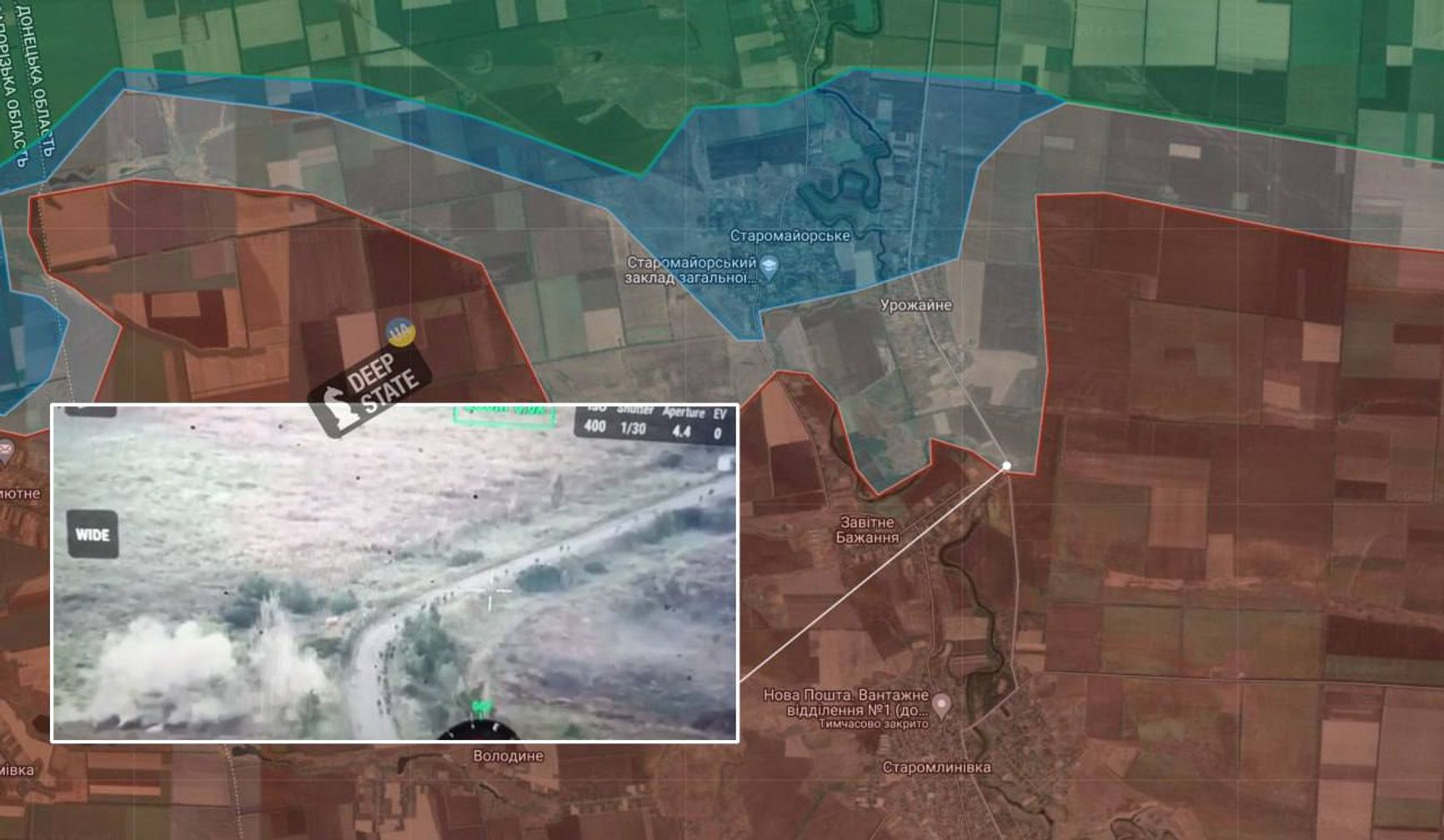 Сразу несколько Z-каналов и «военкоров» написали (1, 2) о потере ВС РФ села Урожайное на Времевском выступе. Украинский OSINT-ресурс DeepState геолоцировал видео с отступлением российских солдат под обстрелом в расположенное южнее село Заветное Желание (часто фигурирует в русскоязычных СМИ под украинским названием Завитне Бажання).