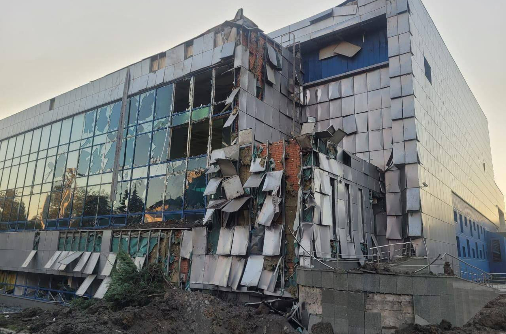 В результате обстрела промышленного предприятия в Днепре ранены два человека, 59-летняя женщина и 70-летний мужчина. Как сообщил глава Днепропетровской ОВА Сергей Лысак, силам ПВО удалось сбить над регионом семь крылатых ракет Х-101/555. Позднее он опубликовал фото дворца спорта, также пострадавшего при ударе.